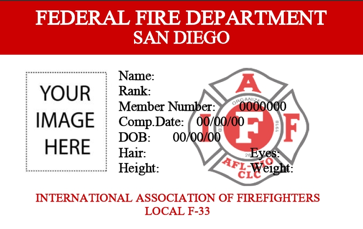 Upon submitting the form & a professional face shot, your ID Cards will be available for pick-up within 5-7 days at the IAFF Local F-33 Union Hall located at Station 16.